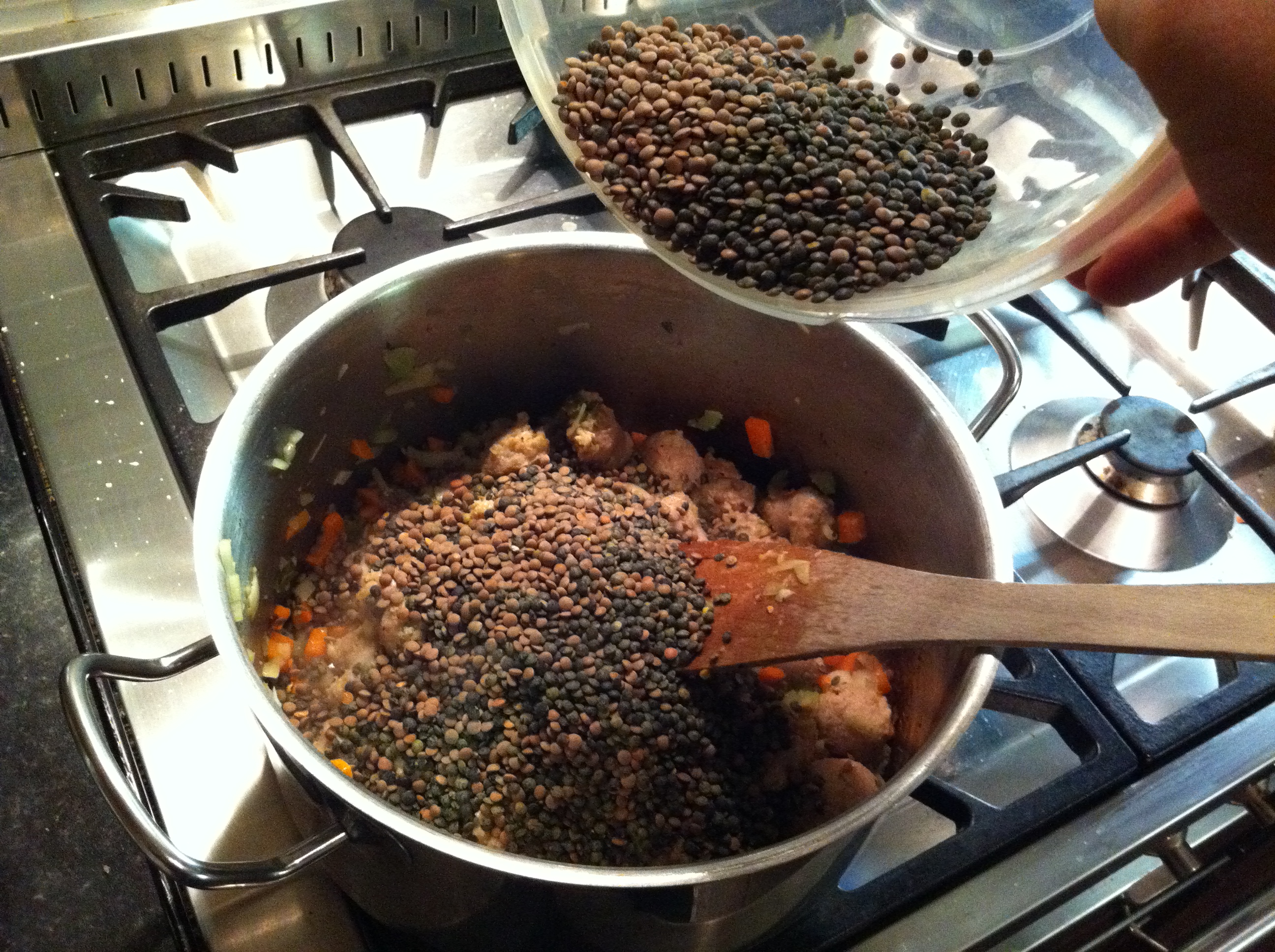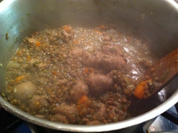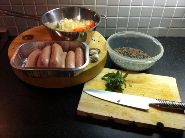 So here’s the first of my recipes – a variation of the Italian class Salsiccia e Lenticchie, otherwise known as Sausage and lentils.